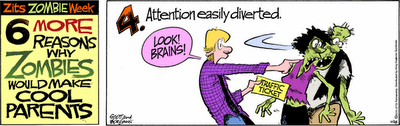 Check out these cool comic strips by ArcaMax Publishing that were over on the cool ass blog Zits & Zombies. These really prove that if the zombie apocalypse were to hit and we could get the zombies under control.... well, maybe zombie parents would not be so bad. Enjoy the cartoons, and thanks to CCD Follower Morphine for putting us on to this cool site... Which one do you like the best? Tell us in the comment section below.